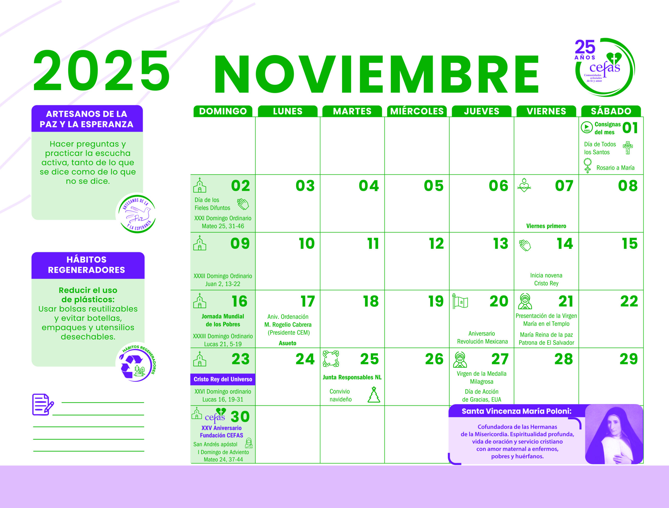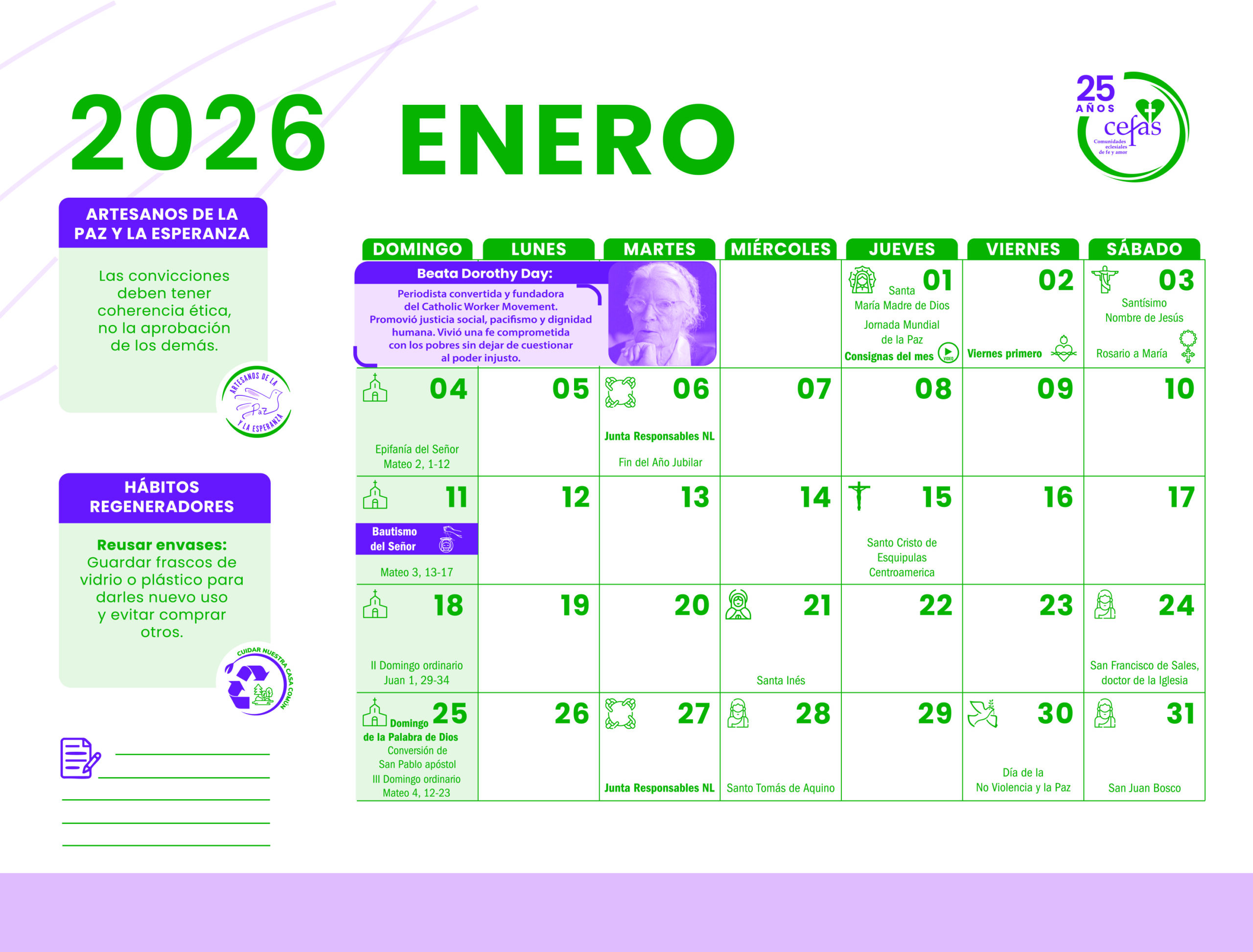 La agenda es tu apoyo para conocer y reflexionar con la comunidad los temas y las actividades que se proponen. El calendario te recuerda fechas de eventos, juntas, celebraciones.